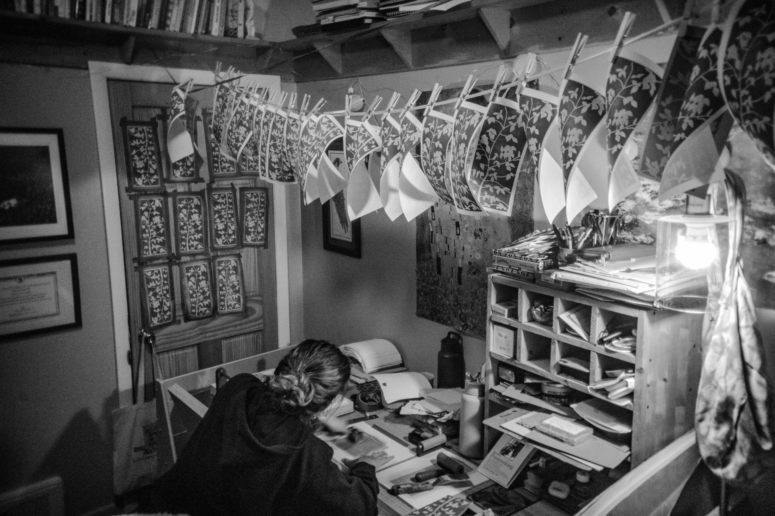 great lake prints is a collection of hand-made linocut and monotype prints created by Maileen Bugnaski. the linocut process involves carving an image on a linoleum block, and using a press or baren to transfer this image onto paper.